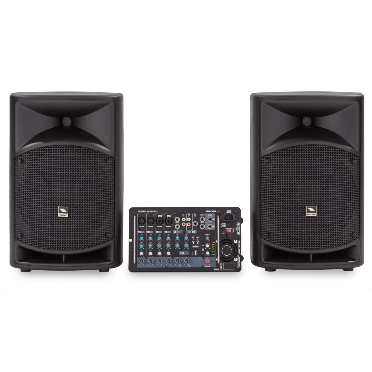 Hệ thống đi kèm hai cáp loa PROEL chất lượng cao, đầu cắm 1/4” bằng kim loại siêu bền. Hai loa, được thiết kế trong thùng nhựa PP nhẹ, bao gồm một driver nén 1,35” VC với còi và một loa trầm 10”, mang lại âm thanh toàn dải mạnh mẽ, sạch sẽ với SPL cao. Tay cầm lớn trên đỉnh thùng loa và giá đỡ cột ở đáy giúp việc vận chuyển và lắp đặt trở nên nhanh chóng và dễ dàng.