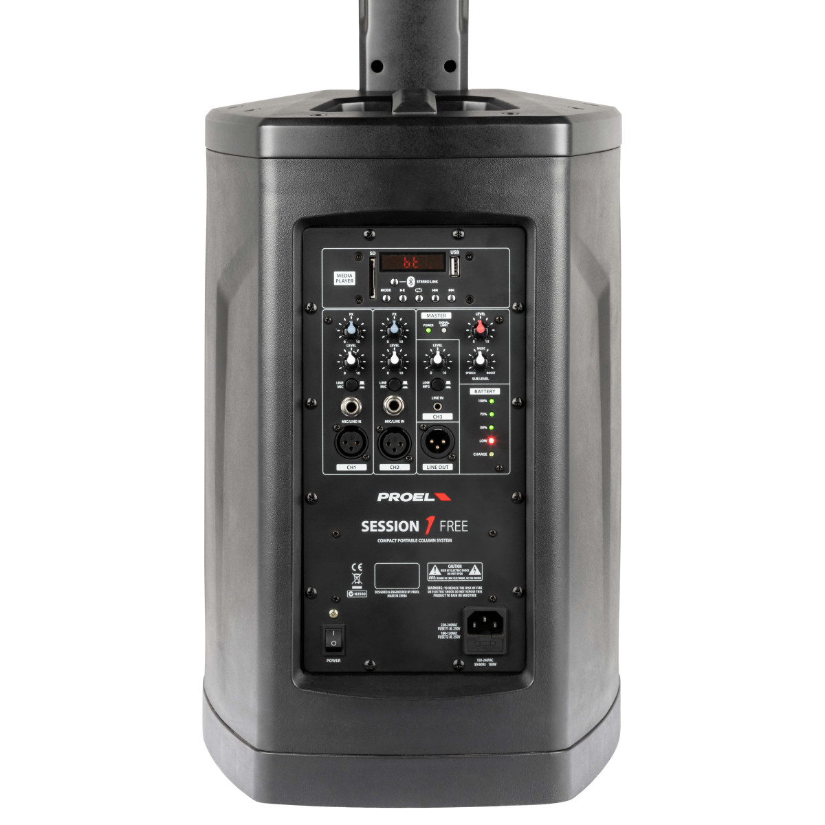 SESSION1FREE là hệ thống loa cột di động tích hợp nhiều đầu vào và máy phát MP3 đa năng với kết nối BLUETOOTH. Được đặt trong thùng loa bằng nhựa polypropylene nhẹ nhưng cực kỳ bền bỉ, hệ thống bao gồm một cột loa với bốn loa toàn dải 2.5” độ phân giải cao và một loa siêu trầm 8” mạnh mẽ. Phần điện tử hiện đại bao gồm bộ tiền khuếch đại tinh vi với lọc chủ động, mạch CLIP LIMITERS kép và bộ khuếch đại Class D 2 kênh 400W mạnh mẽ. Pin Li-ion tích hợp cung cấp thời gian hoạt động liên tục lên đến 8 giờ, mang lại sự tự do tối đa khi sử dụng.
