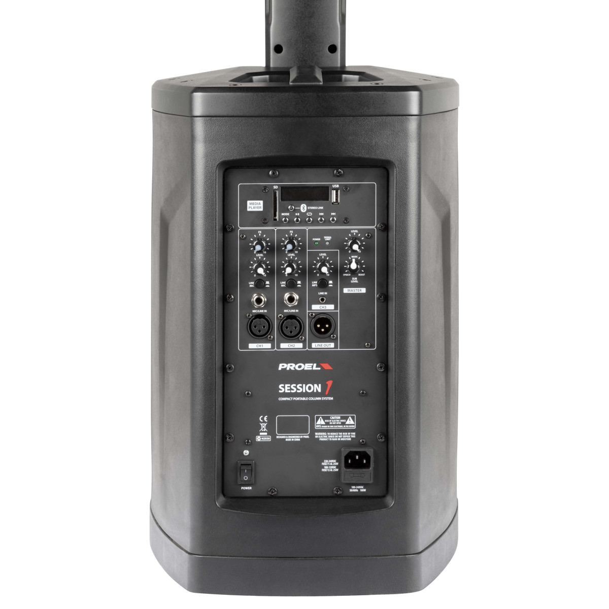 SESSION1 là hệ thống loa cột di động tích hợp nhiều đầu vào và máy phát MP3 đa năng với kết nối BLUETOOTH. Được thiết kế trong thùng loa bằng nhựa polypropylene nhẹ nhưng cực kỳ bền bỉ, hệ thống bao gồm một cột loa với bốn loa toàn dải 2.5” độ phân giải cao và một loa siêu trầm 8” mạnh mẽ. Phần điện tử tiên tiến bao gồm bộ tiền khuếch đại tinh vi với lọc chủ động, mạch CLIP LIMITERS kép và bộ khuếch đại Class D 2 kênh 400W mạnh mẽ.