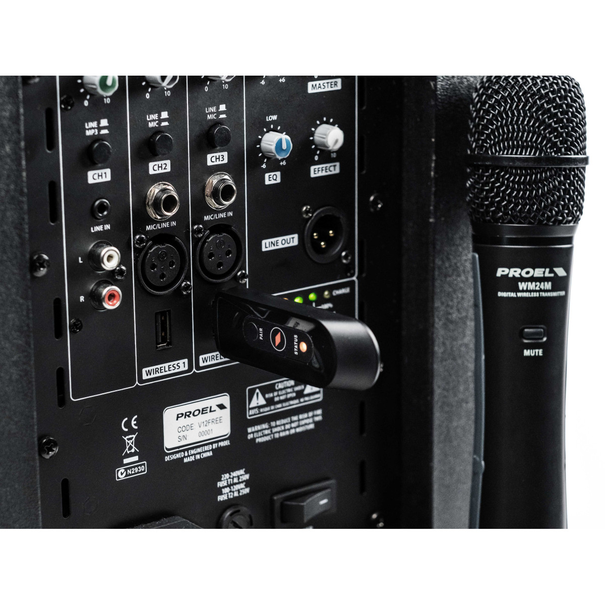 U24 USB Wireless Microphones là hệ thống micro không dây chuyên nghiệp cung cấp truyền tải chất lượng cao, không bị nhiễu nhờ công nghệ 2.4GHz và đi kèm với một bộ thu USB siêu nhỏ gọn. Bộ thu được cấp nguồn qua giao diện USB và có giao diện âm thanh chế độ kép tự động nhận diện kết nối với cả thiết bị analog và digital. Nó có chức năng plug-and-play, không cần cài đặt driver và có thể kết nối trực tiếp với bất kỳ máy tính PC/MAC nào để ghi âm trực tiếp vào ứng dụng DAW yêu thích của bạn. Sử dụng một bộ chuyển đổi USB type-A thích hợp, nó cũng có thể kết nối với các thiết bị IOS hoặc Android cho các ứng dụng độc lập số. Cuối cùng, nó có thể được cắm vào bất kỳ thiết bị PROEL nào có đầu vào USB WIRELESS (như loa V FREE và V WAVE) để sử dụng hệ thống micro chuyên nghiệp ngay lập tức mà không cần lo lắng về dây cáp.